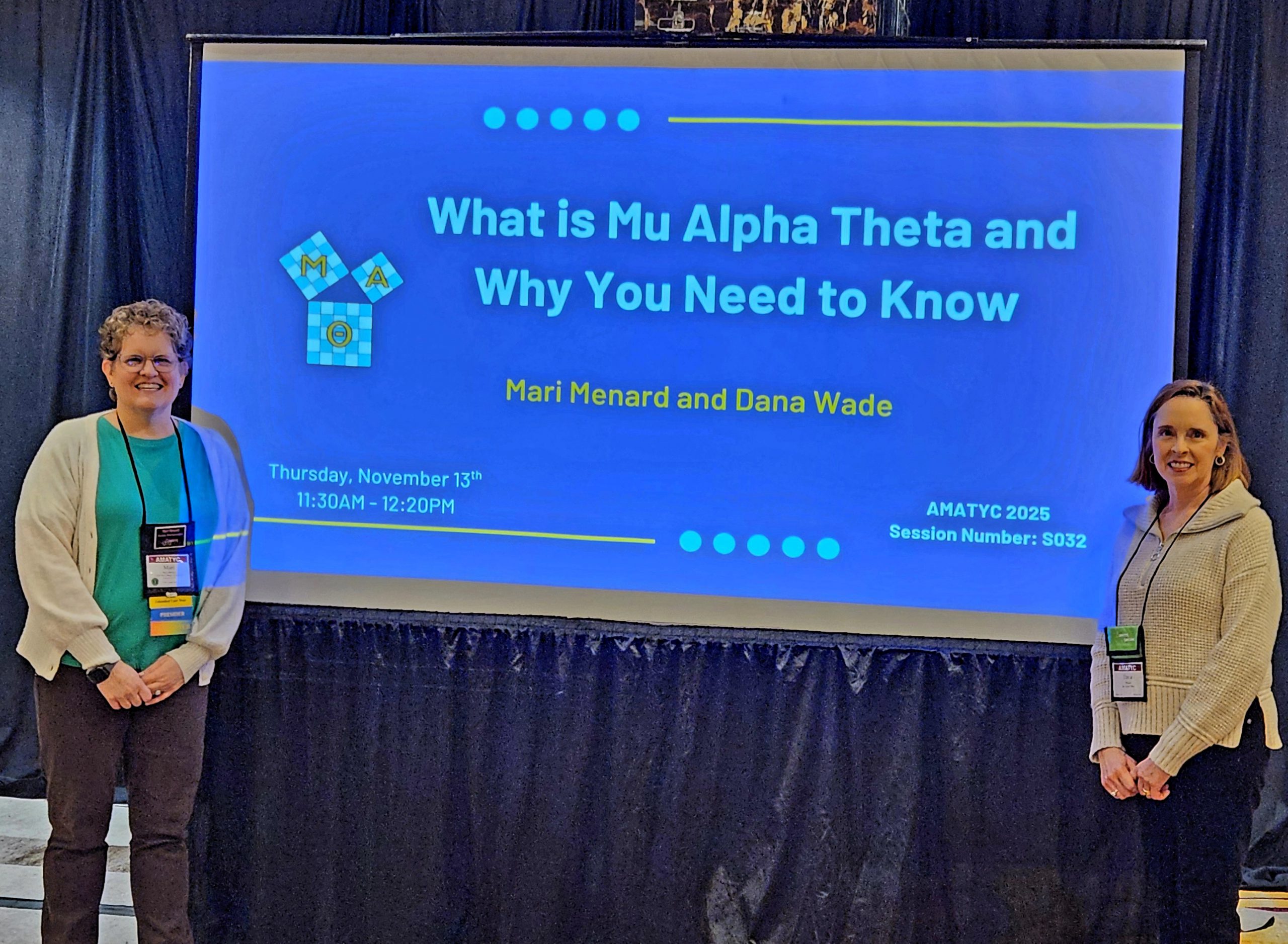 American Mathematical Association of Two-Year Colleges, AMATYC Representative to Mu Alpha Theta, presenter, and presider